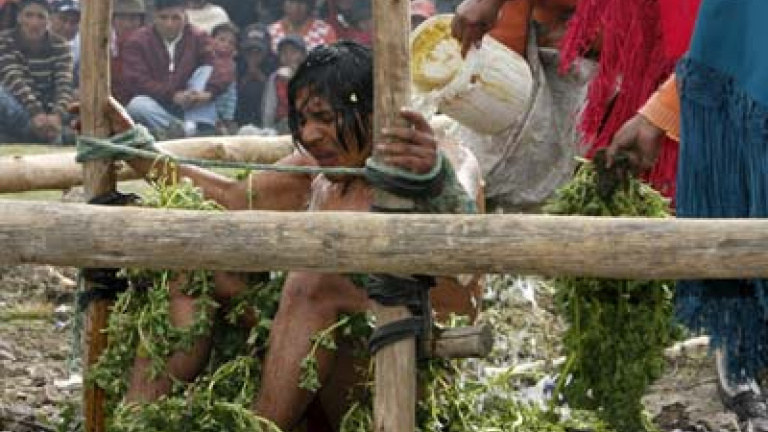 Para los indígenas, ese castigo es simbólico. "Es un ritual antiguo que responde a nuestra cultura. Ayuda a purificar y limpiar el alma. El agua fría y las ortigas reactivan las buenas energías", explica Chaluisa.