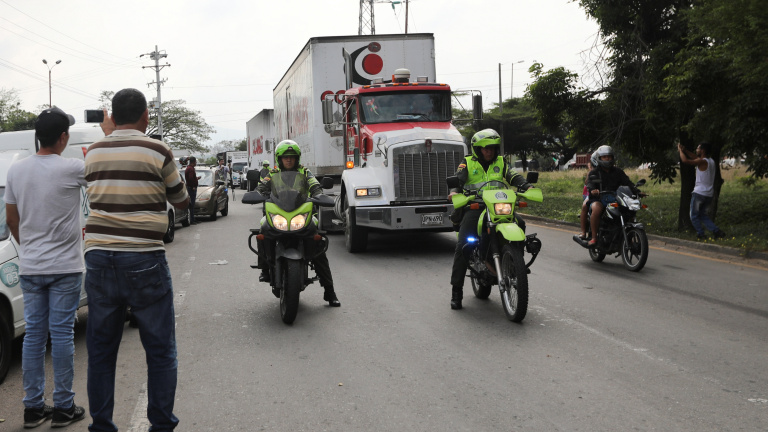 VenezuelaLlega a la frontera venezolana el primer cargamento de la ayuda humanitaria