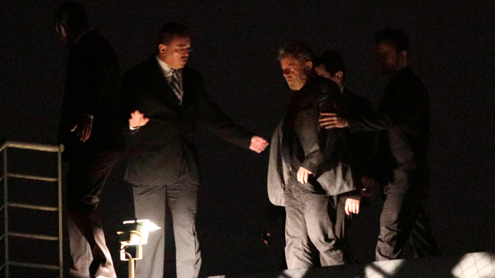 El expresidente brasileño Luiz Inácio Lula da Silva se entregó a las autoridades tras abandonar este sábado la sede del Sindicato de los Metalúrgicos de Sao Bernardo do Campo en medio de un tumulto. Lo hizo tras la misa que se celebra en memoria de su esposa, fallecida el año pasado, y para la cual el exdirigente ha salido por primera vez de la sede del sindicato, desde que se resguardara allí este jueves para evitar la cárcel. "Me entregaré porque no les tengo miedo. Demostraré que soy inocente", ha afirmado Lula.