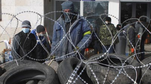 Esta madrugada, los activistas prorrusos "han bloqueado [con vallas, bordillos de las aceras y otros objetos] el tráfico en la calle Sovétskaya, frente a la sede del SSU", denunció la policía de la región.