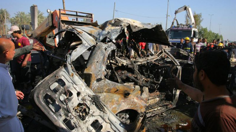 El atentado, atribuido al grupo terrorista Estado Islámico, se produjo con un camión bomba contra un puesto de control policial y del Ejército iraquí