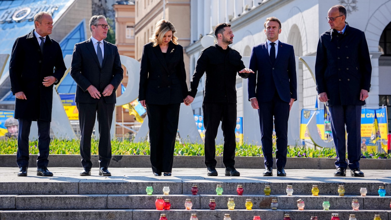 Macron, por su parte, en declaraciones al canal TF1 durante su trayecto en tren hacia Kiev, afirmó que, si Moscú rechaza la tregua, se deberán imponer "sanciones mucho más duras" que afecten con contundencia a la economía rusa. "No se trata de enviar grandes contingentes militares, sino de mostrar una solidaridad estratégica real", ha explicado sobre el posible despliegue de una fuerza de paz.