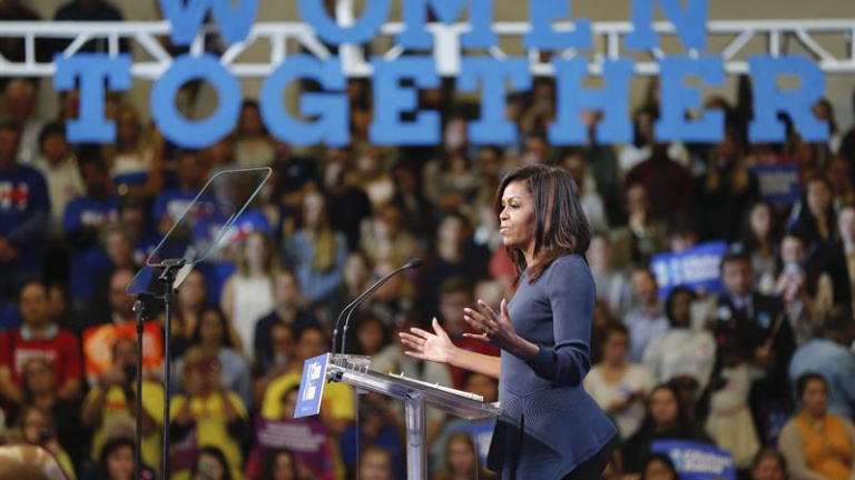 Hasta ahora la primera dama y Clinton no han ofrecido ningún mitin juntas. En la Convención Demócrata de julio en Filadelfia, Michelle Obama triunfó con un discurso optimista sobre cómo ha evolucionado y progresado el país, en claro contraste con la visión apocalíptica que normalmente ofrece Trump. "Gracias a Hillary Clinton, mis hijas, y todos nuestros hijos e hijas, ahora dan por sentado que una mujer puede ser presidenta de Estados Unidos", destacó entonces.