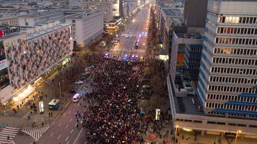 La convocatoria partió de la organización Strajk Kobiet (Huelga de Mujeres), secundada por colectivos LGTBI, y se suma a las movilizaciones que desde hace semanas se suceden contra la línea del ultranacionalista partido gubernamental Ley y Justicia (PiS).