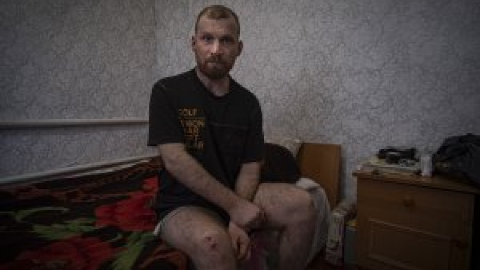 "Antes trabajaba como vendedor en un almacén, y también fui guardia de seguridad. He trabajado en todo", explica Alexander sentado en su cama, donde pasa la mayor parte del tiempo. Habla despacio, a su ritmo. "Ahora pienso más despacio, necesito más tiempo", me aclara. "Pero estoy agradecido de no haber muerto, primero por el cáncer y luego por la guerra... aunque no sea capaz ni de cambiar una bombilla".