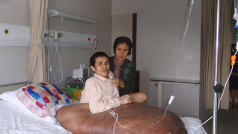Masiva Nguyen Duy Hay, un joven de 30 años vietnamita, está siendo operado de un tumor de 90 kilos que viene sufriendo desde su infancia. El tumor, que no es maligno, es el más grande registrado en Vietnam. La operación tendrá una duración de 10 horas con una probabilidad de éxito del 50%, según ha explicado la agencia AFP.