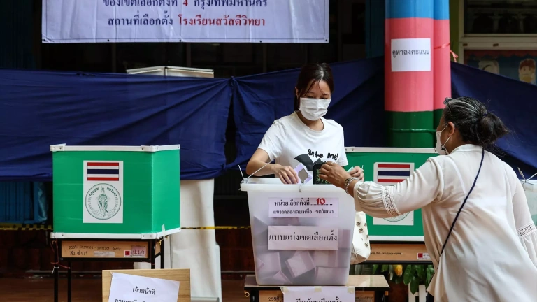 El joven partido Move Forward, con una ambiciosa agenda de reforma, se perfila como el ganador con más de diez millones de votos y unos 150 escaños, mientras que el Pheu Thai, ligado al poderoso clan Shinawatra, quedaría segundo con más de ocho millones de papeletas y 144 diputados, según las proyecciones de los medios.