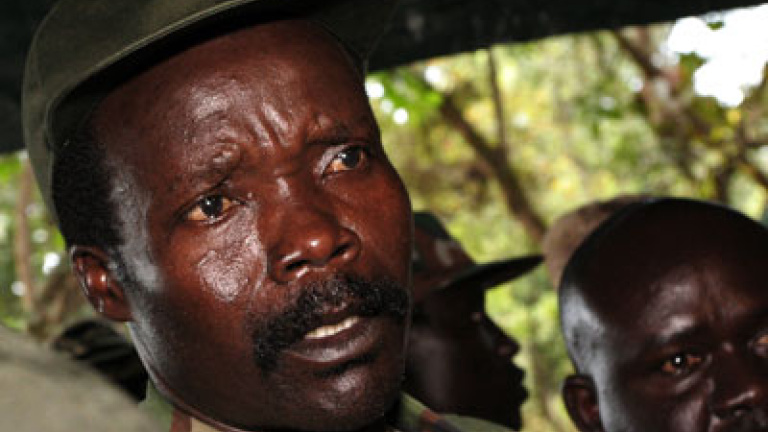 El líder del Ejército de Resistencia del Señor (LRA, por sus siglas en inglés) está acusado de crímenes de guerra por la Corte Penal Internacional. Obtuvo su terrorífica reputación por la barbarie que se desató bajo sus órdenes contra la población del norte de Uganda, habiendo reclutado a aproximadamente 20.000 niños y secuestrado a más de 40.000. Sus acciones produjeron el desplazamiento de alrededor de 1,8 millones de personas.