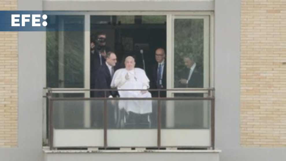 El papa se asomó este domingo por la ventana de su apartamento en el Policlínico Gemelli de Roma, en su primera aparición pública desde su hospitalización hace 38 días por una grave infección respiratoria, para saludar y bendecir a los fieles antes de regresar al Vaticano, tras recibir el alta médica.