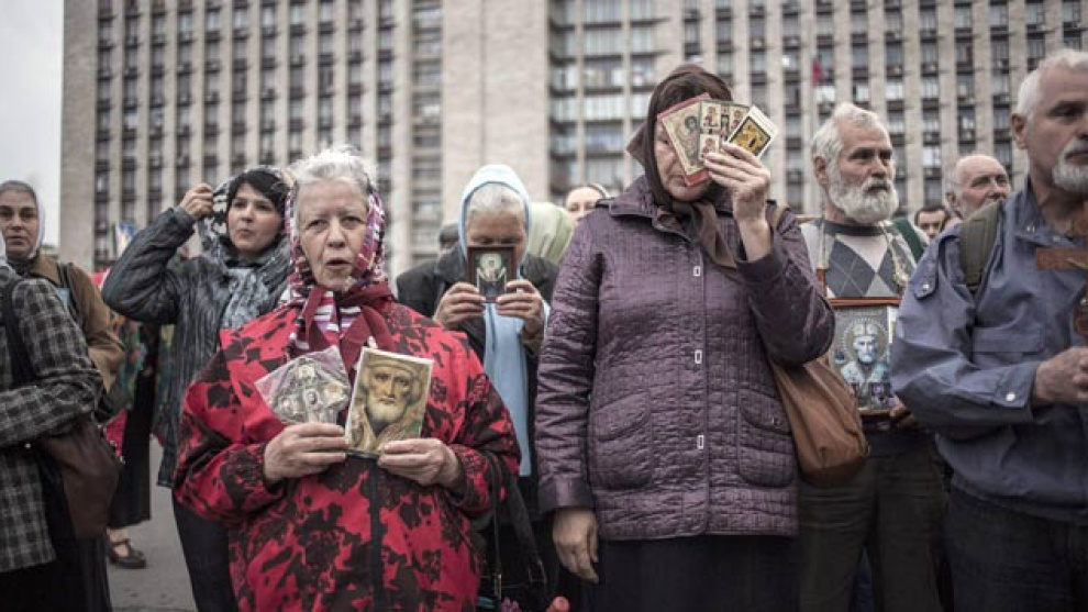 El edificio, ahora carbonizado, está rodeado de flores y de cientos de personas que piden a Rusia una intervención, una respuesta. El anuncio de la Policía, que iniciará una investigación, no va a calmar los ánimos. Los habitantes de habla rusa tienen poca confianza en los agentes.