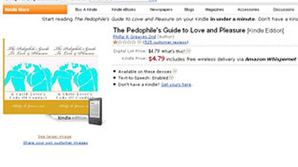 Polémica por la venta en Amazon de un e-book pro-pedofilia