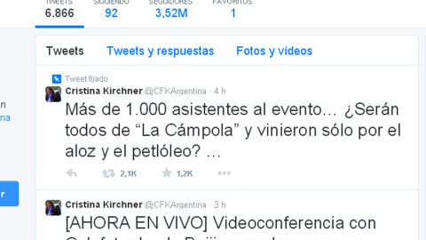 "Más de 1.000 asistentes al evento? ¿Serán todos de "La Cámpola" y vinieron sólo por el aloz y el petlóleo? (sic)", publicó la mandataria en su cuenta oficial tras encabezar un seminario empresarial en Pekín.