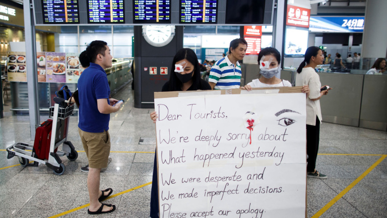 Los manifestantes han llevado al aeropuerto las reivindicaciones que desde hace más de dos meses han sacado a las calles de Hong Kong a miles de personas, entre ellas la retirada de una polémica ley que autoriza la extradición de sospechosos a la China continental.