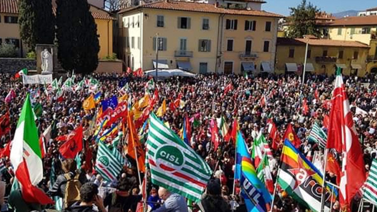 Como reacción, alrededor de tres mil personas se reunieron en una plaza de la ciudad para rechazar la marcha neofascista, entre ellos el presidente de la región de la Toscana, Enrico Rossi.