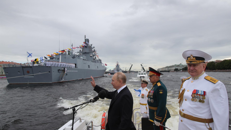 Rusia celebra este domingo el Día de la Armada en San Petersburgo y su presidente, Vladimir Putin, ha aprovechado el baño de masas para anunciar un reforzamiento de la posición del gigante en el mar y cambio en sus alianzas. La invasión a Ucrania ha puesto el foco de todos los esfuerzos en el aspecto militar y dominar las aguas ante la recurrente amenaza de Occidente es fundamental en la estrategia belicista de Putin.