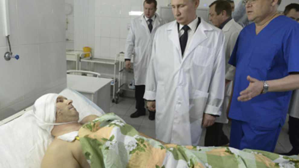 El presidente ruso, Vladimir Putin, ha visitado este miércoles en la localidad de Volgogrado, en el sur de Rusia, a varias de las personas que resultaron heridas en los atentados terroristas perpetrados por suicidas el domingo y el lunes y que han acabado con la vida de al menos 34 personas.