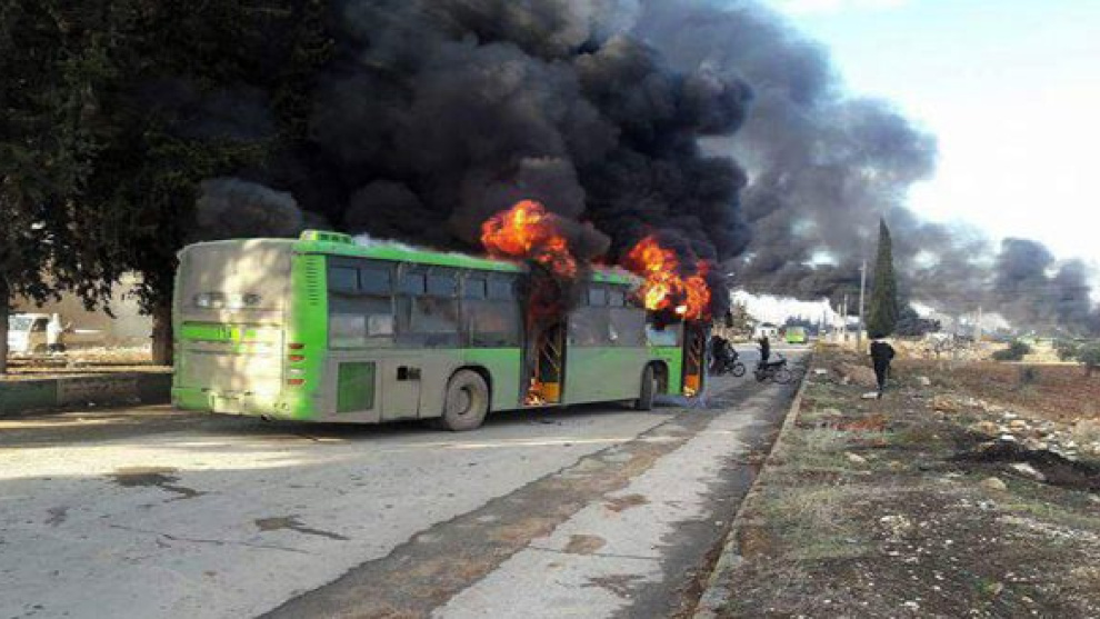 Queman seis autobuses que iban a evacuar civiles en Alepo