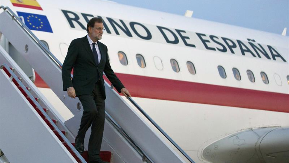 El avión de la Fuerza Aérea Española en el que Rajoy viajó a la capital estadounidense junto al resto de su delegación aterrizó en la base de Andrews pasadas las 19:15 horas (23:15 horas GMT).