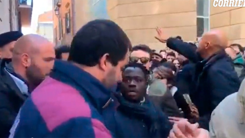 El ultraderechista vicepresidente y ministro del Interior Italiano se estaba sacando fotos con sus simpatizantes cuando pareció el vendedor en escena. "No tengo nada que comprar", le dijo antes de que su escolta lo sacara de entre la multitud.