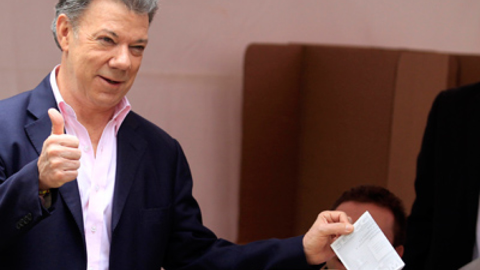 El presidente de Colombia, Juan Manuel Santos, fue reelegido este lunes para gobernar su país hasta 2018 con el apoyo de la izquierda y los movimientos sociales, a los que prometió no defraudar y avanzar en la paz con las guerrillas sin impunidad y con justicia social. Santos obtuvo en la segunda vuelta electoral celebrada este domingo el 50,95% de los votos frente a su rival, el uribista del partido Centro Democrático, Oscar Iván Zuluaga, que obtuvo el 45,00%, según datos oficiales tras haberse escrutado todas las papeletas depositadas en las urnas.
