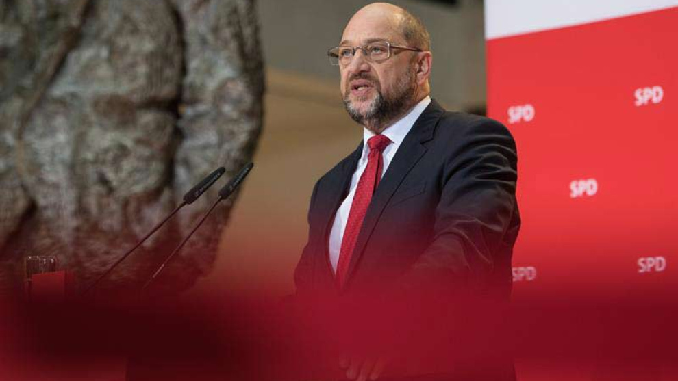 El líder del Partido Socialdemócrata alemán (SPD), Martin Schulz, pronuncia un comunicado en la sede de la formación en Berlín. | EFE