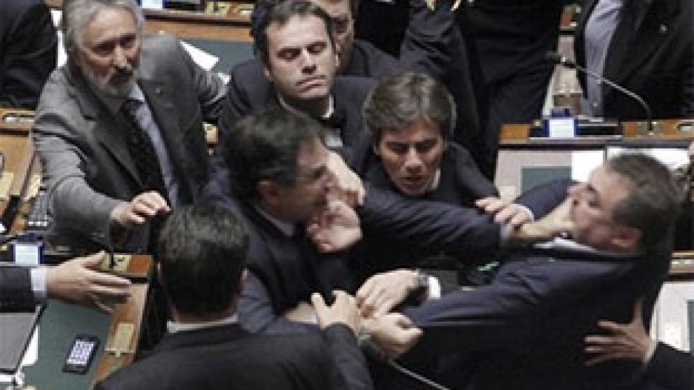No es la primera vez que la Cámara de los Diputados tiene que hacer frente a un episodio como este. El 11 de octubre fueron los partidos de la oposición los que, desde sus tribunas, pidieron a gritos la dimisión del primer ministro italiano, Silvio Berlusconi.