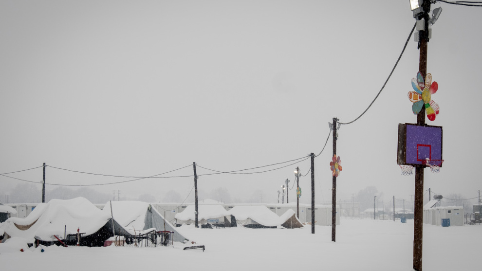 Las mismas tiendas que sirvieron para el verano se mantienen ahora mismo en gran parte de los campamentos. Unas 15.000 personas, según el Gobierno griego, esperan en las islas de Lesbos, Quios y Samos bajo la nieve a temperaturas de -5ºC. Más de 40.000 en la parte continental del país. De ellas, 500 viven desde hace 8 meses en el campo de Softex donde la nieve ha alcanzado los 25 centímetros de espesor y las temperaturas no han superado los 5ºC.