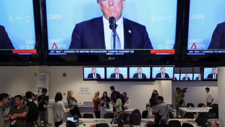 El presidente de Estados Unidos, Donald Trump, culpó a Canadá de su decisión de no suscribir hoy en su totalidad el comunicado conjunto firmado por el resto de países del G7 y no dudó en insultar a su primer ministro, Justin Trudeau, al que llamó "deshonesto y débil".