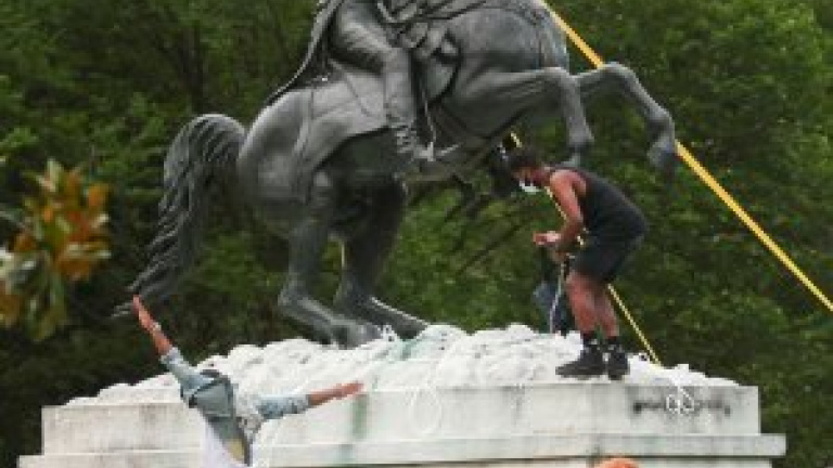 El pasado lunes un grupo de manifestantes intentó derribar la estatua ecuestre de Andrew Jackson, séptimo presidente de EEUU, y Donald Trump aseguró que tomaría medidas al respecto, amenazando con cargos legales "a todo aquel que destruya o vandalice la propiedad federal de los Estados Unidos".