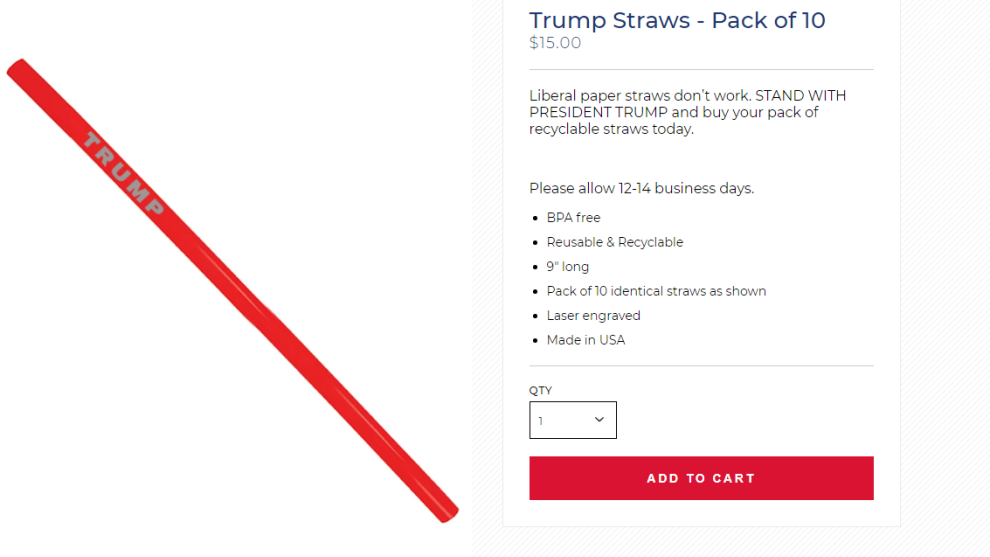 El comité de campaña para la reelección del presidente de Estados Unidos, Donald Trump, lanzó hoy una iniciativa en contra de las pajitas de papel por ser como "las ideas liberales" en un momento en que su uso está entredicho debido a su notable impacto medioambiental.
