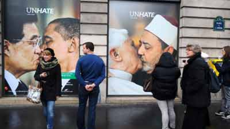 Ver al Papa y al imán de la mezquita de Al-Azhar, en El Cairo, besándose era demasiado para el Vaticano, aunque fuera una broma publicitaria.