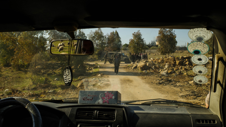 En ningún lugar la situación es tan desesperada como en Al Hamidiya. Es el último pueblo antes de los Altos del Golán ocupados, se encuentra detrás del tanque, aislado del resto del mundo. Un puesto de control militar vigila la entrada del poblado 22 horas al día, lo que permite a las FDI controlar estrictamente el movimiento de entrada y salida. Con la carretera principal bloqueada, los pocos residentes a los que se les permite salir deben recorrer un laberinto de carreteras secundarias a través del árido campo.
