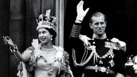 Isabel II con Felipe de Edimburgo tras su coronación en 1953