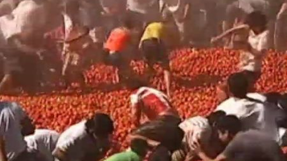 Es la tomatina, versión chilena. Hasta la localidad de Quillón han exportado la tradicional fiesta de Buñol. Una guerra del tomate en la que han participado cientos de personas. Y que ha celebrado su cuarta edición. En un principio fue creada por un vecina, pero ahora es el ayuntamiento de esta localidad quien se encarga de su organización.
