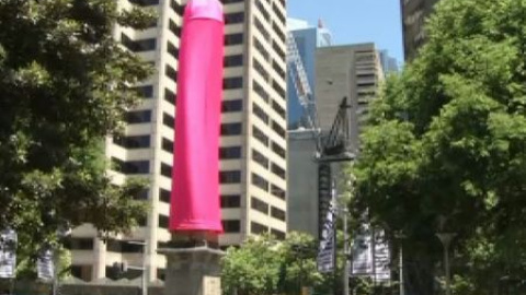 Desde este viernes, los vecinos de Sidney tienen una razón de peso para elevar la mirada, mientras pasean por el centro de la ciudad. Un condón gigante, de 18 metros, y de color rosa brillante ha sido instalado en el obelisco que hay en Hyde Park. La sorprendente imagen forma parte de una campaña de concienciación y apoyo a la lucha contra el sida. El enorme y llamativo preservativo tiene como objetivo recordar la importancia de practicar sexo seguro para evitar la transmisión de enfermedades como el VIH. "Está claro que la instalación creará mucho interés porque hemos elegido un ícono muy visible", explica Nicholas Parkhill, uno de los responsables de la iniciativa. En 2013 se diagnosticaron en Australia 1.235 nuevos casos de VIH, el número más alto de los últimos 20 años. -Redacción-