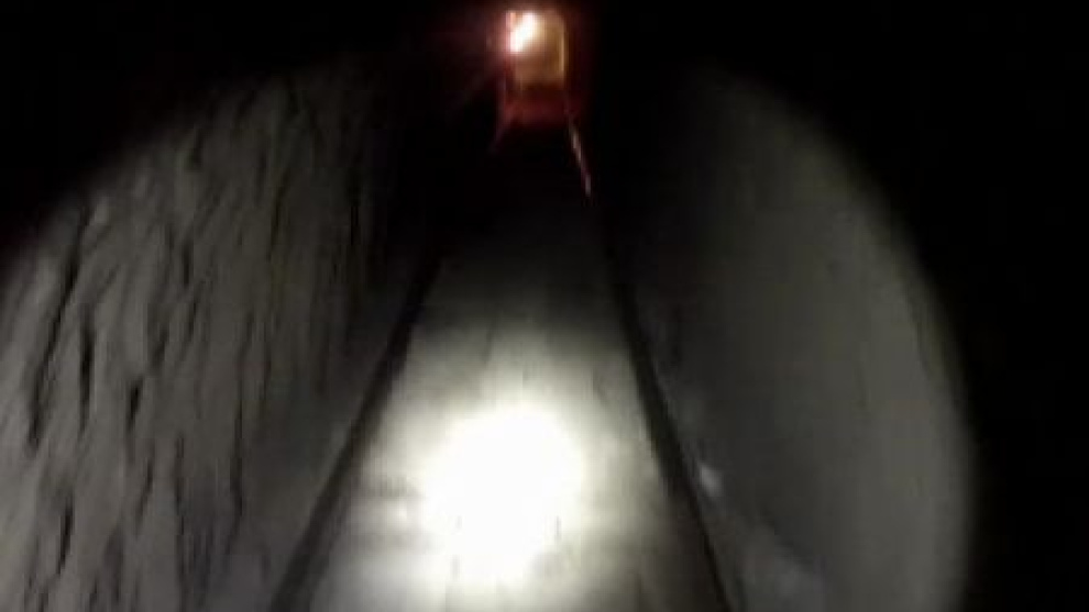 La linterna decubre un pasadizo de quinientos treinta y seis metros que conecta Tijuana, México, con San Diego, Estados Unidos. El túnel está equipado con un sistema de raíles eléctrico para transportar la droga, otro de ventilación y hasta puertas con cierre hidráulico.