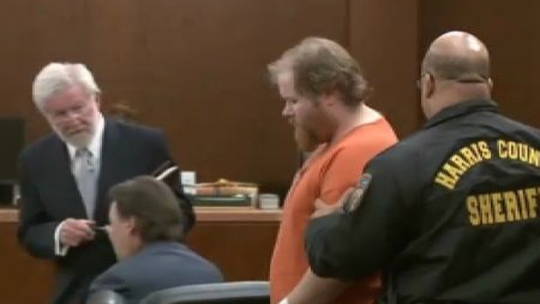 Este hombre de Texas está acusado de asesinar a dos niños de 4 y 15 años, dos niñas de 7 y 9 y a sus padres también. Ella era su ex mujer. Los esperó en su casa y los mató a tiros. Una venganza a sangre fría, posiblemente fruto de un desorden psíquico. Acusado de múltiple asesinato, se desploma mientras le lee la descripción de la escena del crimen. Las autoridades intentan levantarle, pero no aguanta, y cae otra vez al suelo. Al final, pálido, tienen que sentarle en una silla. En Texas este tipo de asesinatos conllevan la pena de muerte.