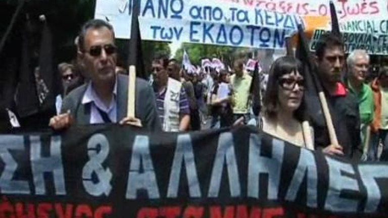 Día sin informativos en Grecia. Los periodistas hacen huelga en contra de los recortes y de la austeridad que estrangula al país. Con consignas como 'Salarios, pensiones y nuestras vidas son más importantes que los beneficios de los editores' y 'Reforzaremos nuestra huelga', los informadores han tomado las calles de Atenas. Los periodistas intentan hacer entender que con trabajadores mal pagados no habrá información de buena calidad y el país no funcionará.