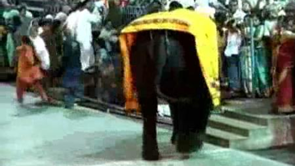 Un elefante ha herido a seis personas que participaban en una ceremonia en Andhra Pradesh, en el sur de La India. El animal emprendió una carrera sin rumbo entre la multitud tras asustarse con el sonido de unas campanas. El paquidermo pudo ser finalmente calmado por varias personas.