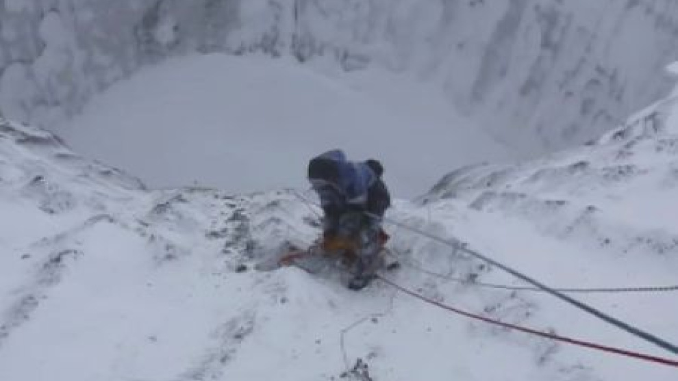 Estas imágenes son inéditas. Se trata del interior de un cráter encontrado en Siberia y que ha sido calificado como el agujero del fin del mundo. Las bajas temperaturas lo han congelado, lo que ha permitido a los científicos llegar a su base, a 10 metros y medio de profundidas y descubrir así el origen de esta formación.