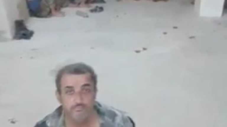 Se identifica como un oficial del ejército sirio. Una voz le interroga sin piedad. Le pregunta que a cúantas personas ha matado, él responde que a nadie. Le pregunta a cuántas a violado, también, le responde que a nadie. Y sigue el acoso hasta que le preguntan por qué no abandonó el ejército. "Porque me habrían vuelto a llevar". El militante entonces le responde: "ellos te habrían devuelto al ejército, nosotros te llevaremos al infierno y te cortaremos el cuello". Una amenaza que de nuevo se cumple. Más de 200 soldados sirios capturados caminan en fila por el desierto hacia su ejecución. En calzoncillos, apaleados, hasta que terminan así, convertidos en una larga fila de cadáveres.