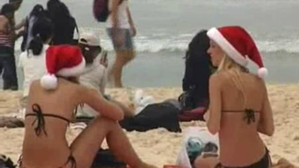 Las playas de Australia ofrecen como cada año la imagen más peculiar de la Navidad. Miles de jóvenes deciden pasar el día festivo de Navidad disfrutando del sol y del mar en Sidney, eso sí, ataviados con graciosos gorros de Papa Noel. No sólo los bañistas y los surferos, también los socorristas lucen el atuendo típicamente navideño.