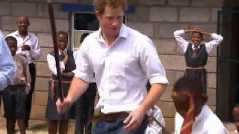 Así celebran en Lesotho la llegada de un Príncipe Harry....con una danza tradicional. Un baile al que no ha dudado en unirse. El tercero en la línea de sucesión al trono británico visita la ONG que fundó en 2006, un centro ubicado en Kananelo que ayuda a niños huérfanos con problemas de audición. Padre, madre...palabras que el nieto de la Reina de Inglaterra ha aprendido en lenguaje de sordos. Entre sus planes, también se encuentra visitar una escuela de ciegos y un proyecto de viviendas y distribución agua. Un periplo centrado en la ayuda humanitaria que culminará con una gala de recaudación de fondos en Johannesburgo
