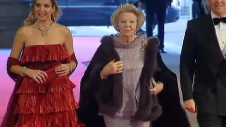 El último discurso a la nación de la reina Beatriz fue emitido en diferido por televisión a las ocho y media de la tarde. En ese momento, la soberana y los futuros reyes, Guillermo Alejandro y Máxima, disfrutaban de una cena de gala junto a los representantes de las monarquías mundiales, entre los que estaban los Príncipes de Asturias. La alfombra roja, a la entrada del Rijksmuseum, se puso a los pies de la realeza. Y abriendo el desfile de esta cena de gala, la anfitriona, acompañada por el futuro rey y una reina consorte, muy expresiva, que cambiaba el naranja del país por un rojo intenso. Lo mismo que su cuñada.El negro ha sido el elegido por la princesa de Asturias. Un modelo de Felipe Varela acompañado con una tiara.Remate de lujo que han lucido las princesas de todo el mundo. Desde la de Brunei, sobre pañuelo, hasta la de Linchenstein. Pasando por la de Dinamarca, la de Bélgica, la de Noruega o la heredera sueca. Por cierto, acompañada también por el príncipe japonés solo. Su mujer dicen no se encontraba bien.Sin su pareja también hemos visto a Alberto de Mónaco, que acompañaba a los príncipes de Luxemburgo. Y muy sonriente a Camila junto al príncipe Carlos de Inglaterra.Ellos, todos de esmoquin, como manda el protocolo. Ya seas de la realeza, o no.