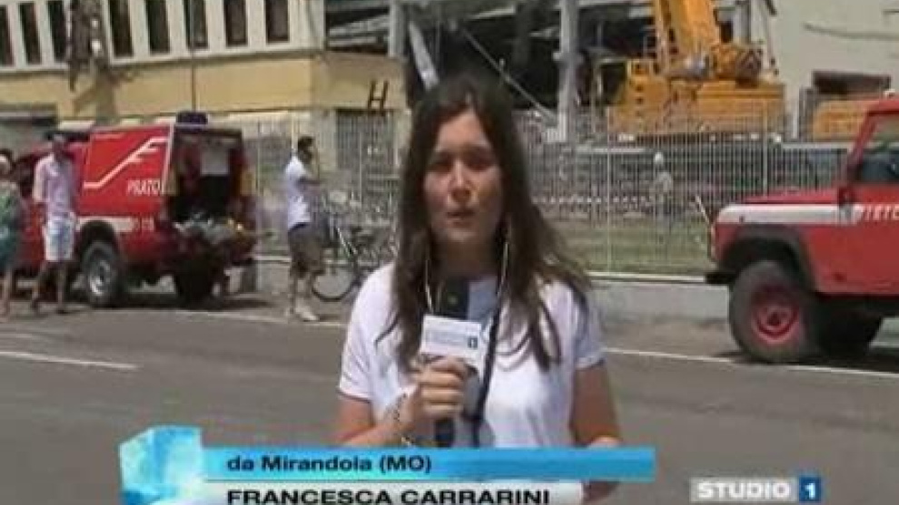 El terremoto que ayer afectó a la región italiana de Emilia Romaña estuvo seguido de numerosas réplicas. Una de ellas sorprendió a una reportera de televisión cuando hacía una conexión desde San Felice. A pesar del susto que se llevó, la periodista siguió adelante con el directo