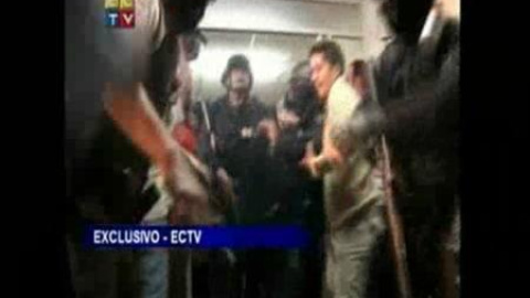 Unas impactantes imágenes muestran el momento justo en el que el presidente de Ecuador, Rafael Correa, fue liberado por un comando del ejército.Los agentes formaron un escudo humano alrededor de Correa y lo empujaron en una silla de ruedas, mientras periodistas y trabajadores del hospital corrían por los pasillos para evitar los disparos. A la puerta del hospital y en medio de una multitud estaba un vehículo, en el que el presidente fuertemente escoltado logró al fin escapar, de los policías que durante 10 horas le tuvieron retenido. Los incidentes comenzaron por la mañana temprano cuando Correa se acercó a una protesta de los agentes de policía y se vio obligado a refugiarse dentro de un hospital, ya que la policía hizo explotar en su cara un cartucho de gas lacrimógeno. Finalmente tropas del ejército lograron liberarle y detener a varios sospechosos.