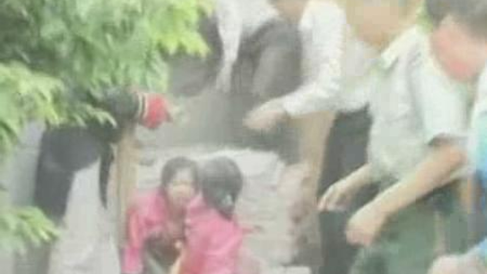 De Beichuan, en la Provincia de Sichuan, han llegado unas estremecedoras imágenes que muestras los instantes posteriores al terremoto de hace ocho días que ha sembrado la tragedia en China. En el vídeo se ve como la gente escapa de los edificios, aturdida y cubierta de sangre y polvo. El pánico se extiende, el suelo seguía temblando; a cielo abierto aguardan una réplica al seísmo de 8 grados en la escala de Richter. Ocho días después, las autoridades señalan que son ya 40.000 los muertos por el devastador terremoto; sorprendentemente, los equipos de rescate siguen encontrando supervivientes.