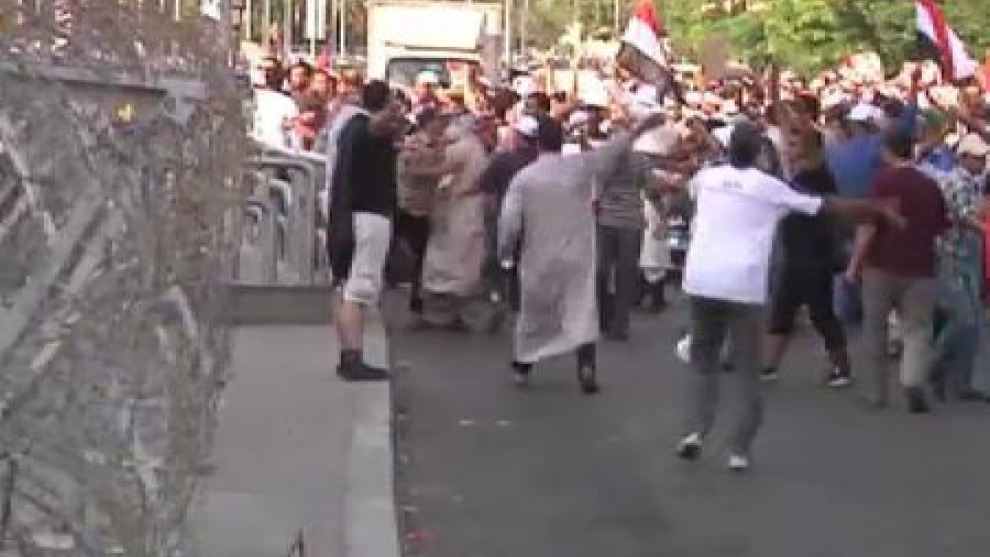 La situación en Egipto se encuentra lejos de estar el bajo control del Ejército. Este viernes de movilizaciones de los Hermanos Mulsumanes está siendo convulso y sangriento. En El Cairo, los militares han disparado contra los partidarios del depuesto presidente, Mohamed Mursi, y hay al menos 5 muertos. La jornada de protesta contra el golpe de Estado se está tiñendo de sangre. El lema de los Hermanos Musulmanes es 'O Mursi o nuestra vida'. En estos momentos, los islamistas marchan hacia el edificio de la televisión estatal y se acercan a la plaza Tahrir de El Cairo. En El Arish, la ciudad más poblada del norte del Sinaí, militantes islamistas armados han matado a unos policías que estaban a las afueras de un edificio gubernamental disparándoles desde una motocicleta.