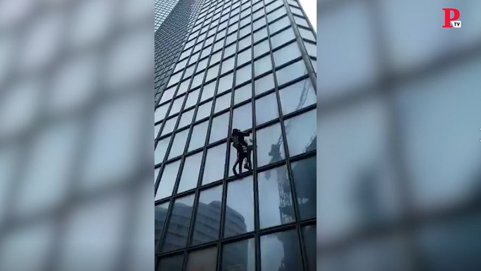 Alain Robert, conocido como el 'Spider-Man' francés, ha escalado la Tour Total, un rascacielos de 48 pisos situado en el distrito financiero de París, en apoyo a los trabajadores que se han movilizado en protesta por la reforma de las pensiones.