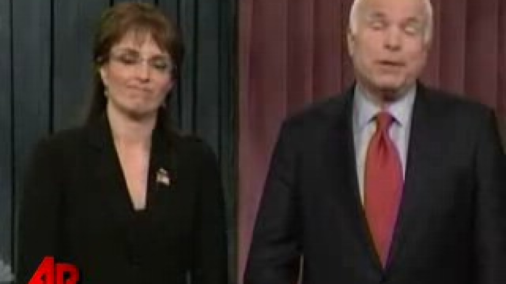 Las encuestas no le favorecen, pero lo cierto es que humor no le falta al candidato republicano, ni a su esposa. Ambos venden joyas y cuchillos en una teletienda.